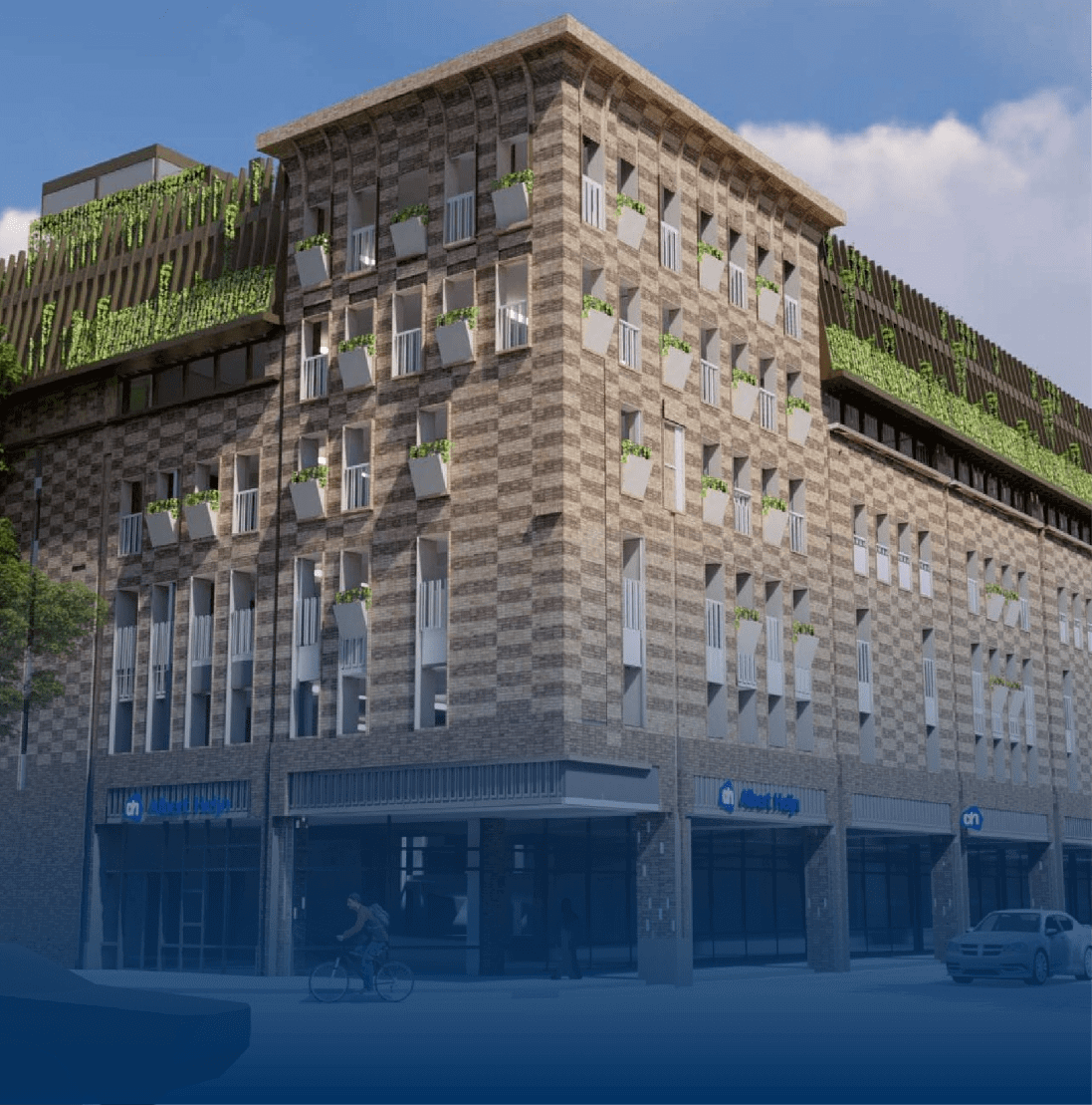 Een ontwikkeling van VORM in de grootste urbanisatie van Nederland: transformatiegebied de Binckhorst in Den Haag. In dit project worden ca. 900 woningen gerealiseerd met een biodivers dakpark. Smitsloo Groep heeft hier de commerciële plint van 1.000 m2 verworven en in Albert Heijn een sterke partner gevonden die in de behoeften en leefbaarheid van het gebied voorziet. Het naastgelegen kasteel, De Binckhorst (tevens eigendom), is verhuurd aan Kindergarden en vervult eveneens een belangrijke (sociale) gebiedsfunctie.